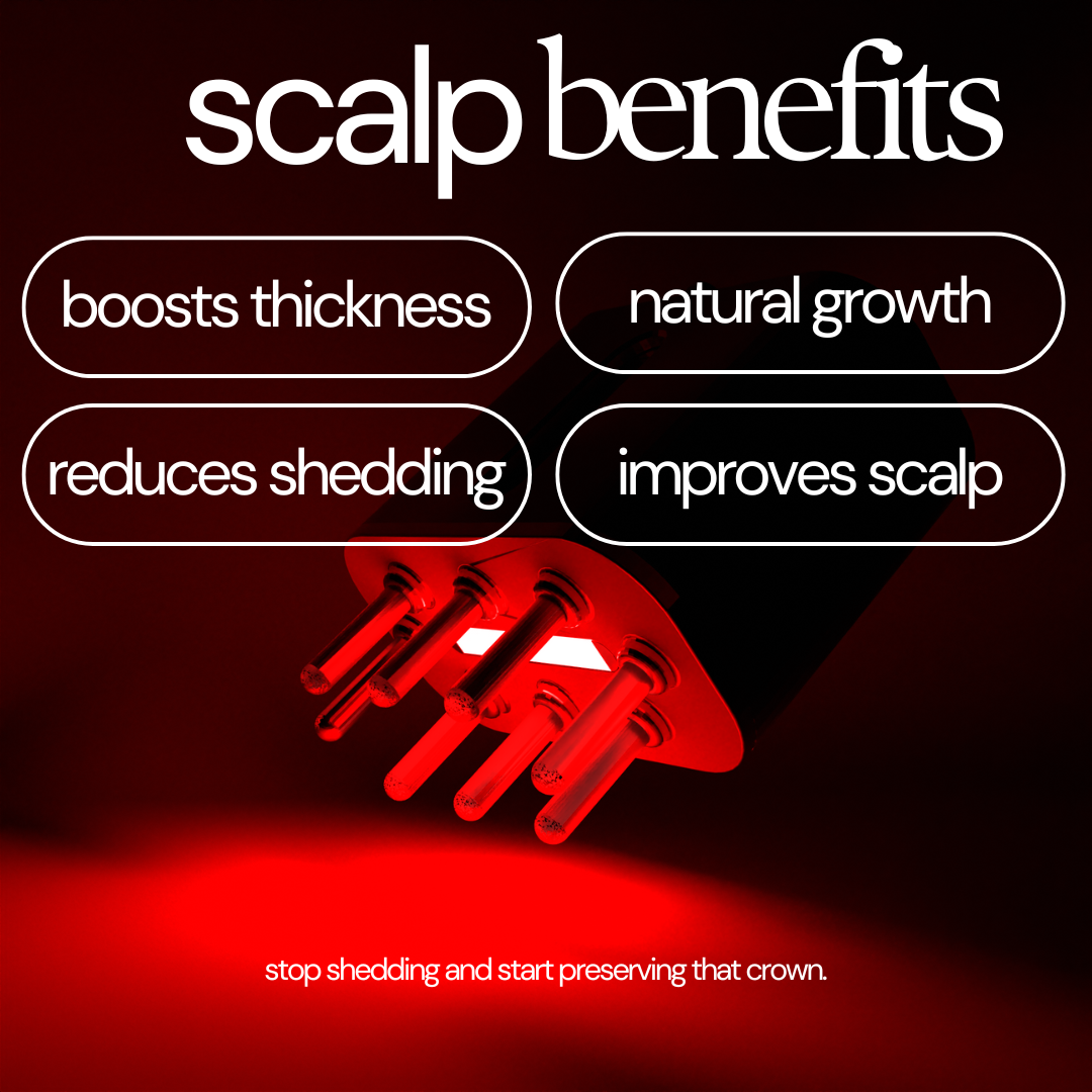 • Advanced red light therapy: Safe, non-invasive treatment that improves overall hair and scalp health.